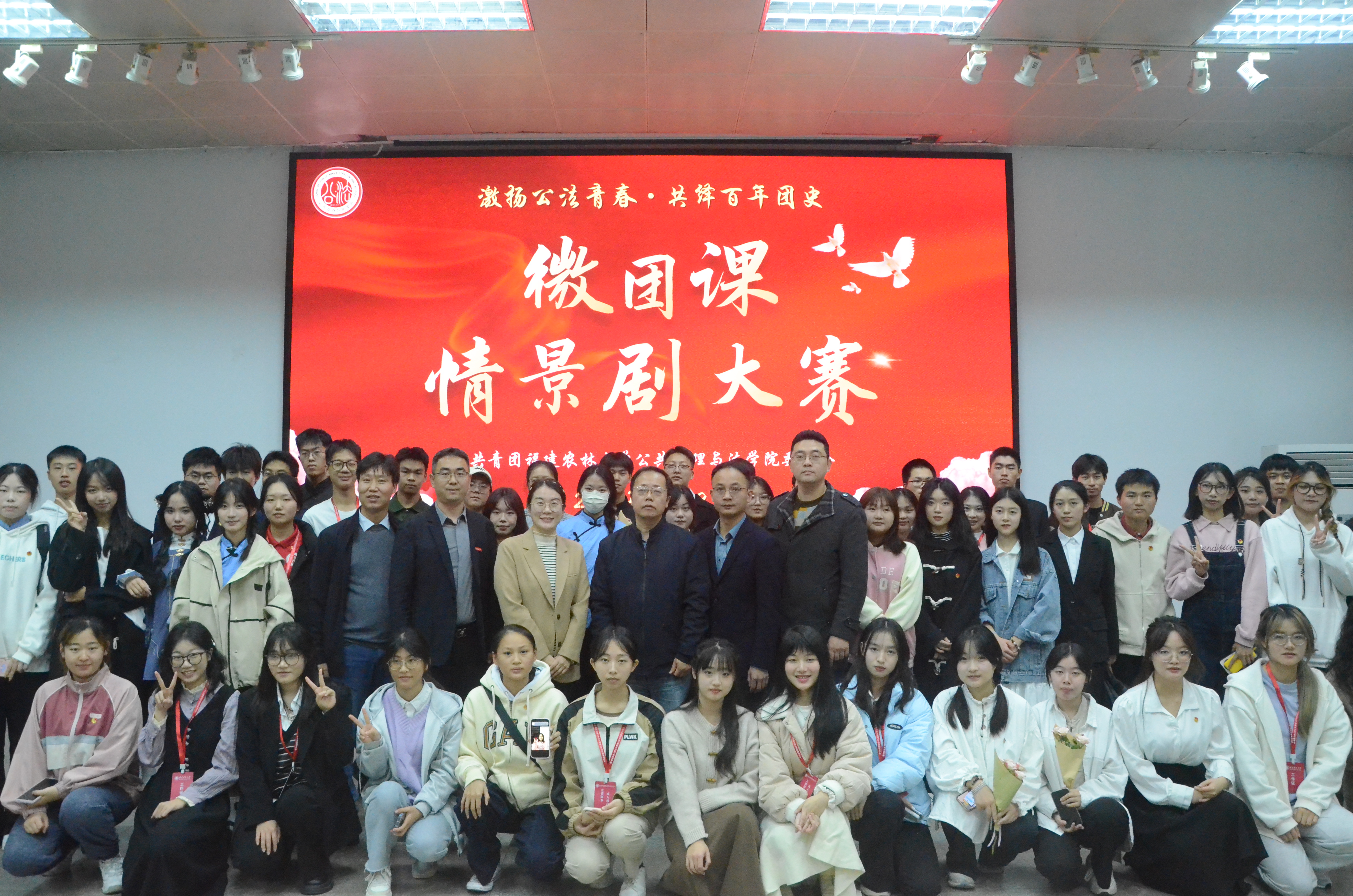 12月9日晚,公共管理与法学院在百悟讲坛举办第一届“激扬公法青春·共绎百年团史”微团课情景剧大赛。福州大学土木工程学院团委书记江小敏、拉斯维加斯3499官网登录入口团委谢国富、园艺学院团委书记马端山、林学院团委书记鲍春、公共管理与法学院团委书记王荣华应邀担任比赛评委嘉宾,学院党委副书记郑龙章、辅导员杨小倩、沈芳儒、张淑灵、姜燕蓝与各团支部同学共计130余人到场观看比赛。