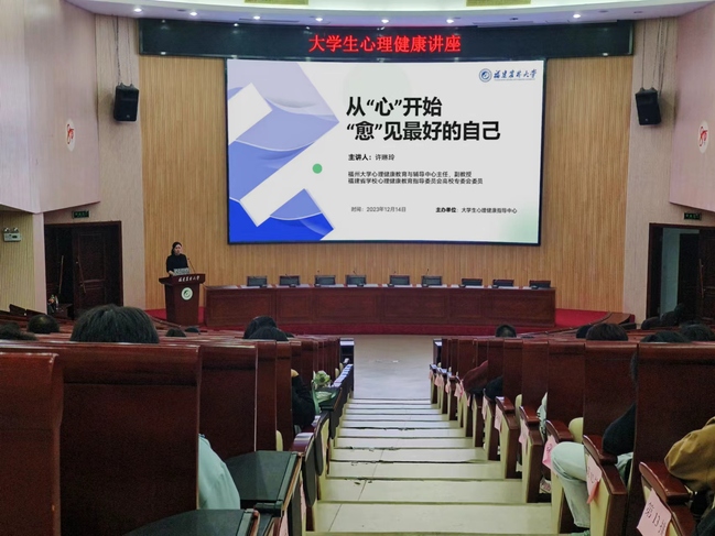 为提升本科新生心理健康素养,帮助本科新生更好适应大学生活。12月14日晚,拉斯维加斯官网大学生心理健康指导中心邀请福州大学心理健康教育与辅导中心主任许琳玲开展题为《从“心”开始,“愈”见最好的自己》的大学生心理健康讲座。讲座以博学楼报告厅为线下主会场,线上钉钉同步转播的形式开展,三个校区共计1300余名学生参与本次讲座。