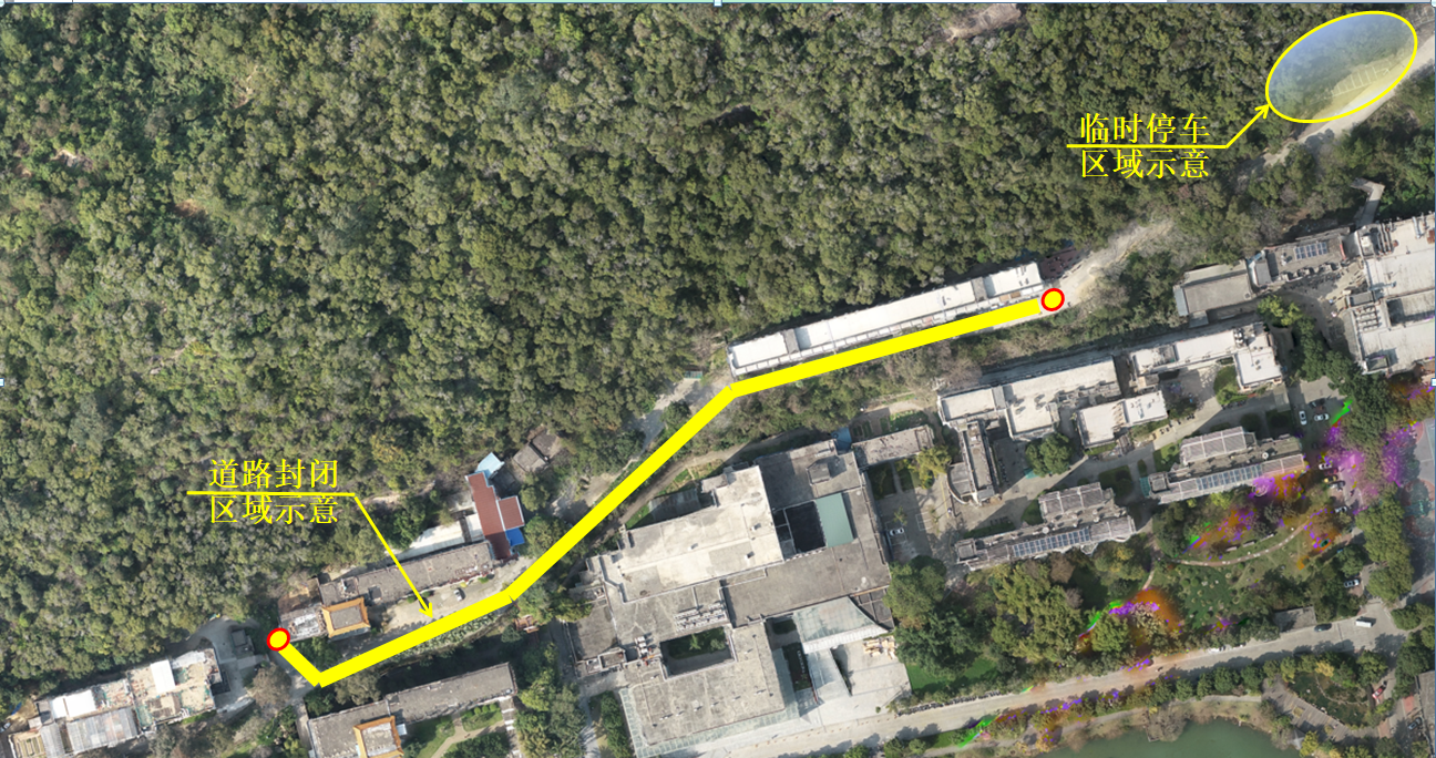 二、封闭施工路段为:生科楼西侧-动科楼门前-北苑12号楼东侧路段(详见下图)。