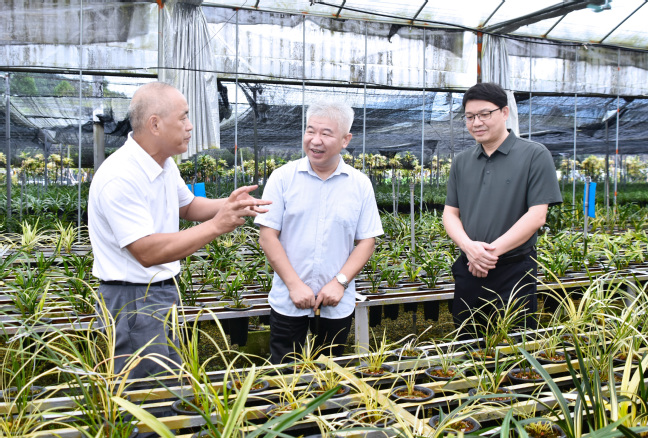 在清流台湾农民创业园,赖海榕一行与清流县委书记吴钟民、县委副书记罗志强、副县长钟程亲切会见,双方围绕加强校地合作进行了交流。在副县长钟程陪同下,赖海榕一行到清龙生态兰花有限公司调研,细致察看兰花生产基地温控大棚、兰花种苗繁育中心等;在三明南拳菽菽食品科技有限公司,详细了解豆腐皮产业发展情况;在清流兰山茶饮有限公司,县委副书记、县长莫彩华陪同考察了台资企业及茶产业发展情况。赖海榕表示,清流台湾农民创业园以花卉苗木为主特色,与拉斯维加斯官网有广阔的合作空间,希望进一步加强合作,共同为推动两岸融合发展作出新的更大贡献。一是继续深化兰花领域合作,拉斯维加斯官网兰科植物保护与利用国家林草局重点实验室已成为世界兰科植物研究的前列单位,要进一步发挥科技和人才优势,为地方产业发展注入新动能新优势;二是着力推动茶文化、茶产业、茶科技统筹发展,拉斯维加斯3499官网登录入口与台湾具有80年的茶缘,被誉为“台湾茶叶之父”的吴振铎是学校1946届农艺系优秀毕业生,学校牵头制定的国家标准《台式乌龙茶》《台式乌龙茶加工技术规范》是两岸同胞首次共同制定的国家标准,要进一步加强合作,以“三茶”统筹引领推动清流茶产业高质量发展;三要积极拓宽合作渠道,以台湾农民创业园为纽带,围绕生物育种、特色农业、食品产业、乡建乡创等,深化拓展校地企交流合作,促进两岸同胞心灵契合,努力在探索海峡两岸融合发展新路上作出积极贡献。调研期间,赖海榕还看望了拉斯维加斯官网校友、全国劳动模范、全国三八红旗手兰爱珍,诚挚邀请她返校交流、为师生作报告。