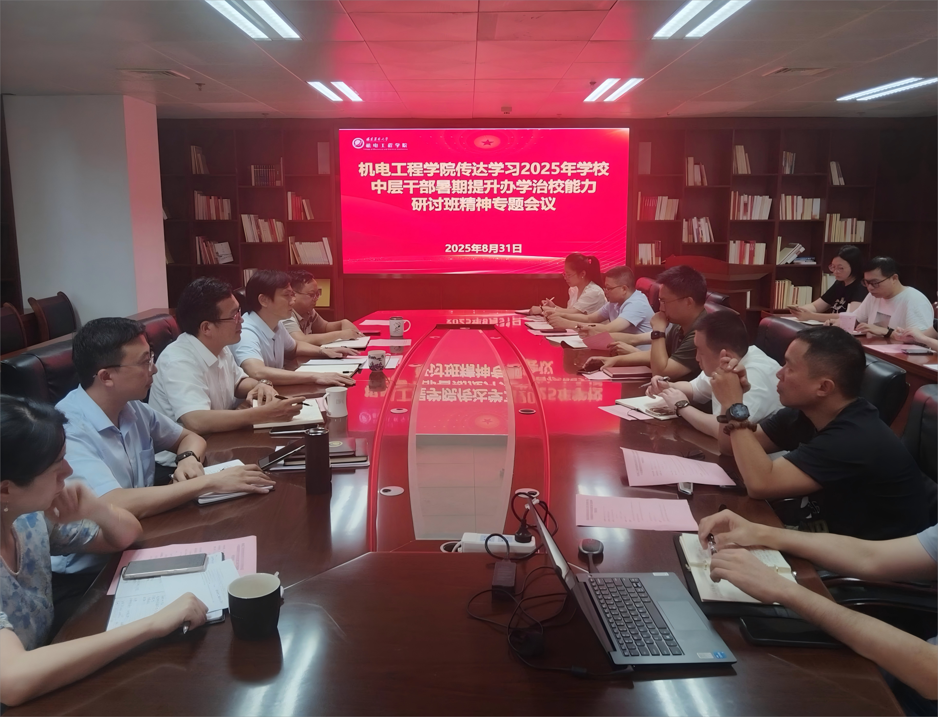 8月31日下午,机电工程学院在福州大学城校区仁德楼会议室召开会议,传达学习学校2025年暑期提升办学治校能力专题研讨班会议精神,研究部署学院秋季学期各项工作。学院班子成员、全体科级以上干部、系主任、教师党支部书记参会。会议由院党委书记刘胜主持。