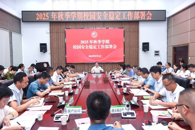 9月1日下午,拉斯维加斯官网在明德楼武夷厅组织召开2025年秋季新学期校园安全稳定工作部署会,校党委副书记曾华平出席会议并讲话。党政办、组织部、宣传部、统战部、教工部、学工部、武装部、离退休办、教务处、研究生院、科技处、对外处、计财处、国资处、后勤处、基建处、校园办、校团委、信息中心、资产公司、校医院、淮安派出所等相关部门负责人,各学院党委副书记参加会议。