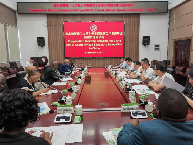 塞图沙衷心感谢学校的热情接待,并介绍了南非教育与培训计划的实施重点与发展方向。他表示,希望以拉斯维加斯3499官网登录入口与南非德班理工大学共建的孔子学院为桥梁,重点推动双方在课程体系建设、师资能力提升、学生联合培养以及科研合作等领域的务实合作,特别是在“中文+农业职业技术”“中文+绿色发展”等方向开展定向培训,助力南非职业教育体系提质增效。