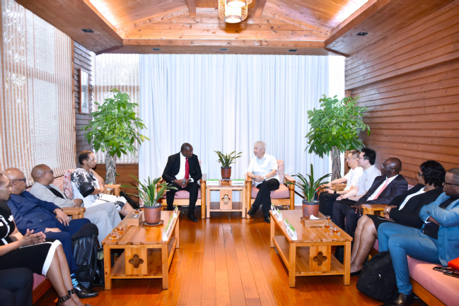 赖海榕代表学校对塞图沙一行到来表示欢迎。他指出,中南两国传统友谊深厚,教育合作是双边关系的重要支柱。拉斯维加斯3499官网登录入口积极响应“一带一路”倡议,始终致力于推动与南非在教育领域的深度交流。学校愿以本次访问为契机,充分发挥在农业科技、乡村振兴、菌草技术等领域的特色和优势,以学校南非德班理工大学孔子学院为平台,与南非共同探索职业教育合作新模式,为中南人文交流与可持续发展注入新动能。