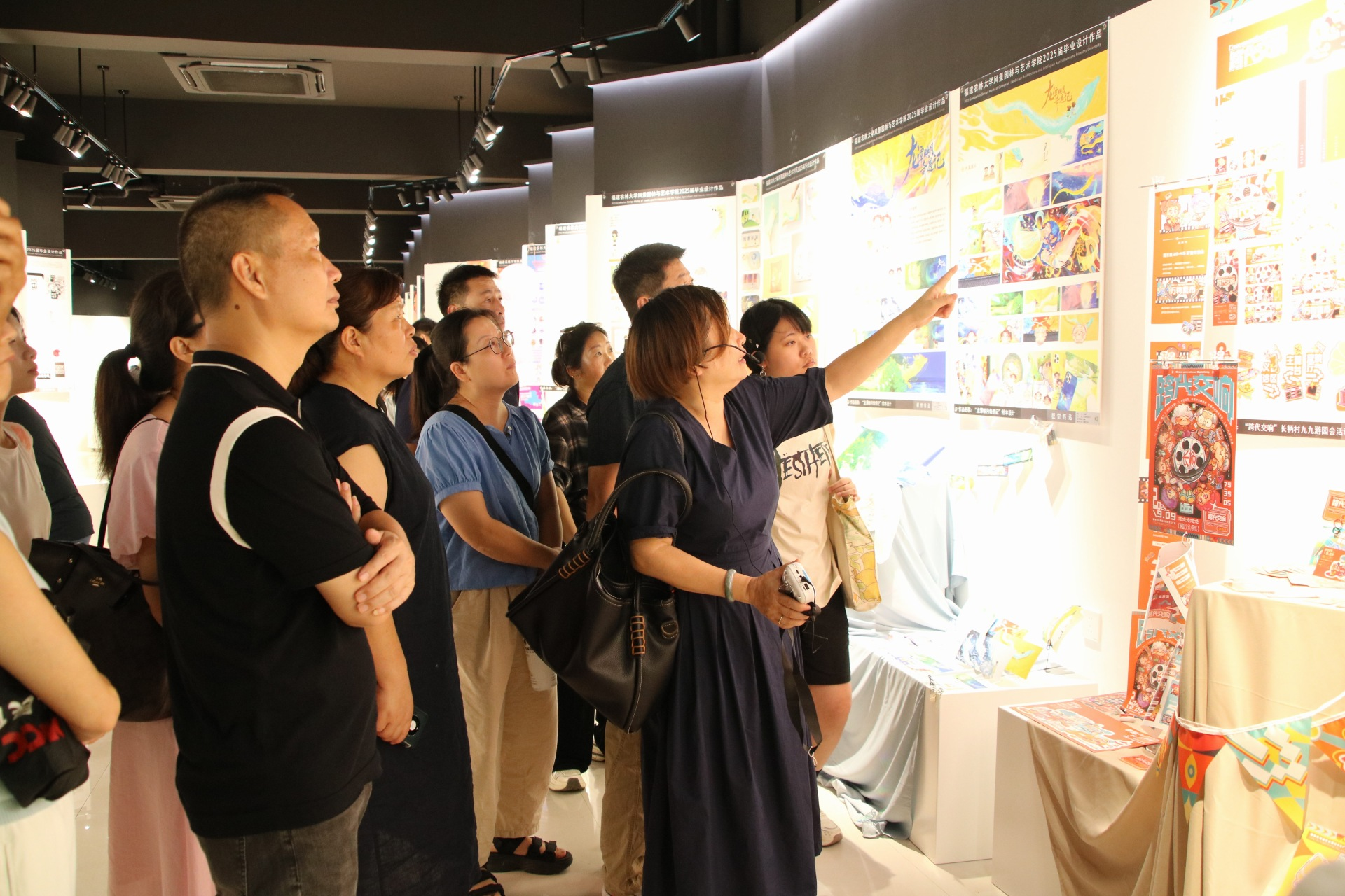 在粤山科技展厅和景艺楼一楼展厅,学院特别布置了育见·遇见设计展,集中展示各专业师生的优秀作品和创新成果,从精巧的设计展板到生动的艺术创作,从课程设计作品到毕业设计作品,每一件作品都凝聚着学生们的智慧与汗水,也体现了学院各专业的教学特色和育人理念。许多家长在展品前驻足观看,不时拍照记录,对学生们的创造力和实践能力表示赞叹,对学院的教学质量有了更加直观的认识。