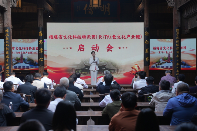 长汀县委书记赖进益在致辞中表示,此次长汀被列为省文化科技特派团试点,是传承弘扬红色文化,丰富红色资源的宝贵机遇,长汀将全力做好服务工作,以最优环境、最强保障,为特派团高效开展工作创造良好条件,共同推动文化科技融合工作在长汀落地生根、开花结果。