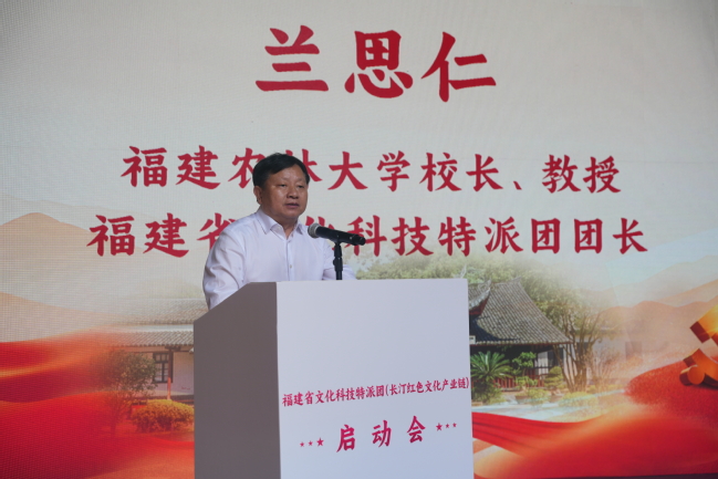 10月27日,福建省文化科技特派团(长汀红色文化产业链)工作启动会在长汀县卧龙书院召开。福建省委宣传部副部长陈勇,广东省作协主席、中山大学中文系教授谢有顺,龙岩市委常委、宣传部部长陈荣水,长汀县县委书记赖进益、县长吕莉等领导、专家和嘉宾出席启动仪式。校长、特派团团长兰思仁出席启动会并致辞。