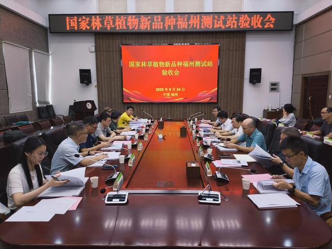 测试站于2024年7月获批筹建。2025年9月24日,国家林业和草原局科技发展中心组织来自中国林业科学研究院林业研究所、广东省农业科学院、福建省农业科学院、江西省林业科学院、福州市园林中心等多家权威机构的专家开展现场验收。专家组通过实地查看、资料审核、质询讨论等环节,一致认为测试站设施完善、技术力量雄厚,完全具备开展兰属、蝴蝶兰属植物新品种DUS测试(特异性、一致性、稳定性测试)的能力,同意通过验收。国家林业和草原局科技发展中心新品种测试管理处段经华处长对筹建工作成效给予高度肯定。