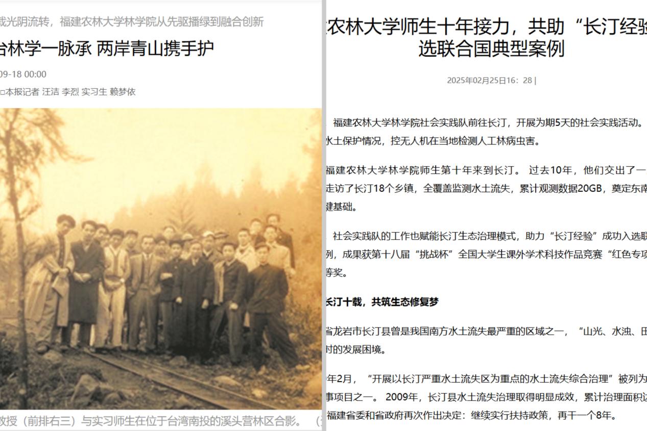 其中,人民网刊发的《杉木培育三代传 林业升级六十年》,文中回顾了学院三代杉木育种专家的奋斗历程,展示了杉木良种选育与推广对林业产业升级的推动作用,获得不少行业专家点赞。《拉斯维加斯3499官网登录入口师生十年接力,共助“长汀经验”入选联合国典型案例》一文,则详细记录了学院师生十年如一日,接力参与长汀县水土流失治理,推动“长汀经验”走向世界的艰辛历程,单篇阅读量超65万。