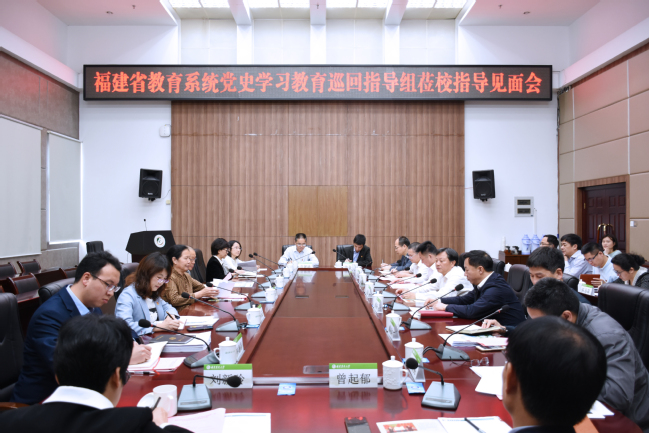 4月27日,省教育系统党史学习教育巡回指导一组在教育厅(省委教育工委)原巡视员李金莲的率领下莅校指导党史学习教育。校党委书记、校党史学习教育领导小组组长严金静,校党委副书记、校长、校党史学习教育领导小组副组长兰思仁,校党委副书记、校党史学习教育领导小组办公室主任曾华平,校党委常委、校纪委书记、校党史学习教育领导小组成员邱应龙,校党史学习教育领导小组及办公室成员和部分二级单位党委负责人参加会议。
