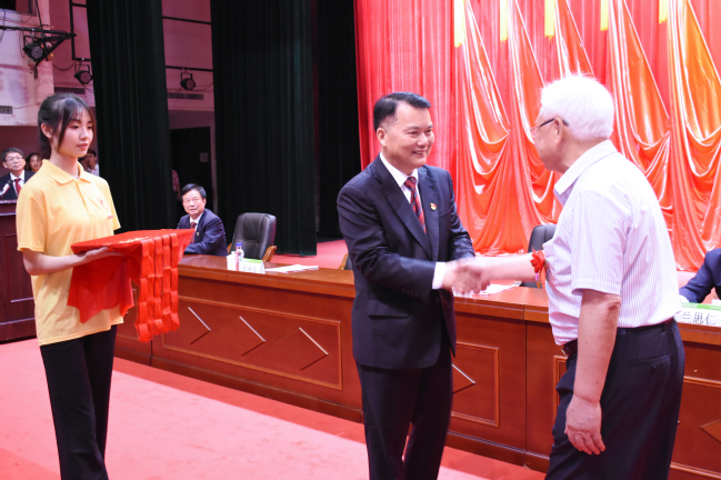 为老党员代表颁发“光荣在党50年”纪念章