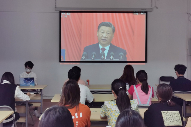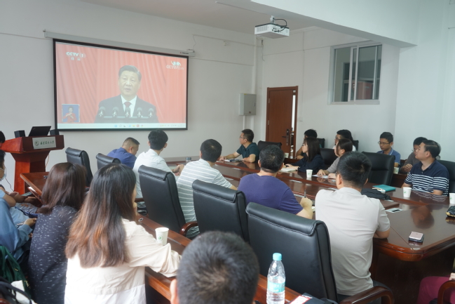 10月16日上午10点,中国共产党第二十次全国代表大会在北京人民大会堂隆重召开,习近平代表第十九届中央委员会向大会作报告。海洋学院认真组织师生通过多种形式收听收看开幕会直播,党员教师在学院501会议室,本科生党员和主要学生干部在401会议室,其他师生在教室、寝室、实验室通过手机、电脑等收听收看,认真学习领会并展开热烈交流。