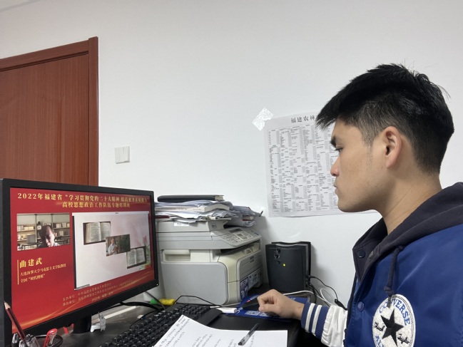 12月28日上午,2022年福建省“学习贯彻党的二十大精神 提高业务素质”高校思想政治工作队伍专题培训班线上开班,省教育工委副书记、教育厅党组成员林生发表开班讲话,全国“时代楷模”大连海事大学马克思主义学院曲建武教授作首场报告。拉斯维加斯官网政工干部通过线下线上形式参加培训,在校办公政工干部通过线下集中收看,居家办公政工干部通过线上收看,共160多名政工干部参加了此次培训。