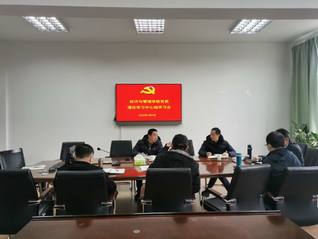 2月9日,经济与管理学院党委理论学习中心组专题学习省委“深学争优、敢为争先、实干争效”的行动动员部署会及校党委常委会精神。会议由院党委书记张开晃主持,理论中心组成员及全体党政管理干部出席。