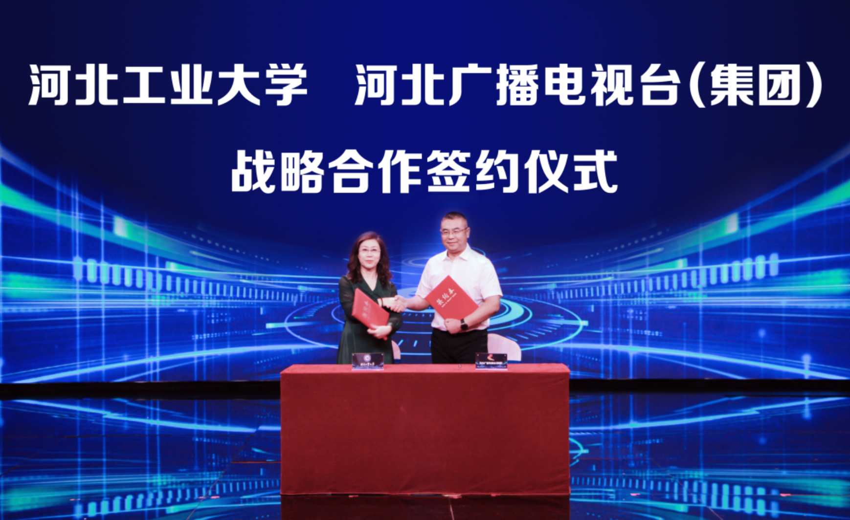 河北广播电视台(集团)党委委员、副台长冀国锋与英国beat365官方网站党委常委、副校长陈鸿雁,代表双方签署战略合作框架协议。双方将共同设立“冀视·河工智媒中心”,开展专业技能、智力资源、新闻采编等多方面合作,携手行业头部企业和科研机构,联合培养具备AIGC技术应用能力、创新能力和跨界融合能力的高素质人才,不断提升行业的核心竞争力。