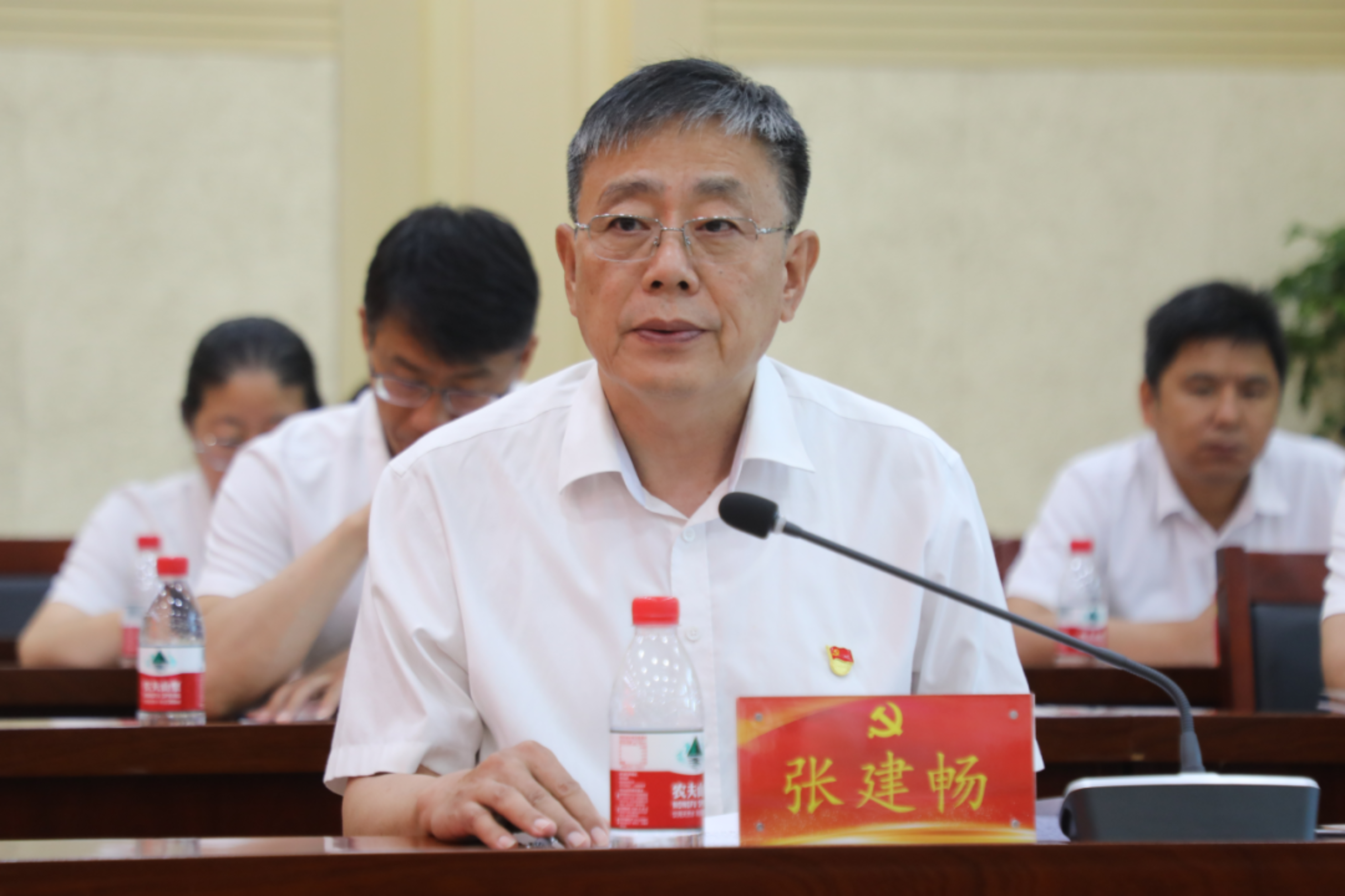 张建畅代表学校党委向获得“光荣在党50年”纪念章的老党员表示崇高的敬意,对老同志为学校建设发展所做的贡献表示衷心感谢。他表示,在党50年,改变的是岁月和年龄,不变的是对党的忠诚和对学校的热爱。小小的纪念章,是对全体党员立足岗位、奋发有为的激励和鞭策。这份力量,激励着我们不忘初心、牢记使命,让信仰的力量代代相传、生生不息、历久弥新!