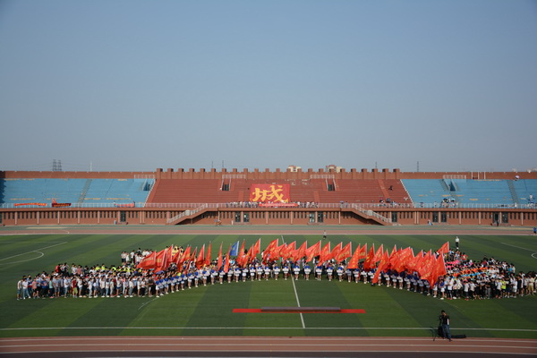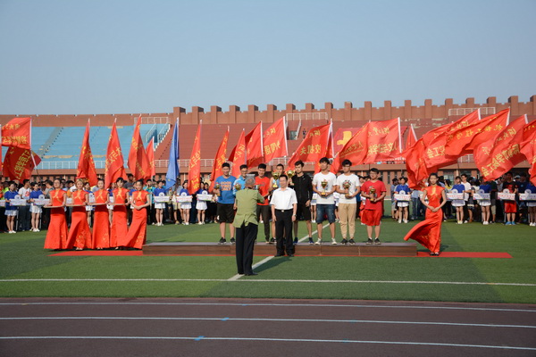 刘兵校长在开幕辞中回顾并肯定了学校过去一年来在体育教育和体育文化活动上的新成绩和新进展。他希望参加本次运动会的全体运动员发扬“更高、更快、更强”的奥林匹克精神,赛出风格、赛出水平,争取运动成绩和精神文明双丰收;希望全体裁判员能够做到“严肃、认真、公正、准确”,全体工作人员能够通力配合,热情服务,力争把本届运动会办成一个安全、热烈、节俭、隆重的体育盛会。随后,体育部王一晨老师、天津市大学生标枪冠军、铅球亚军吴羽伦同学分别代表裁判员、运动员宣誓。