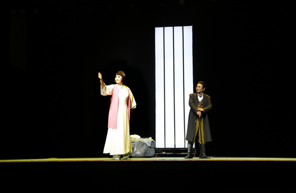 戏剧场景简洁而不简单,表现方式写意却显情深。将戏剧人物放置于典型环境之中,通过生死、情爱、义利、善恶的探问,塑造了以杨开慧为代表的为实现理想甘愿牺牲的早期中国共产党人的形象。通过叙述、对话、拷问,与观众进行信仰层面的对话。
