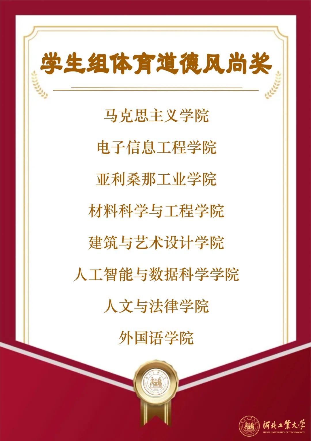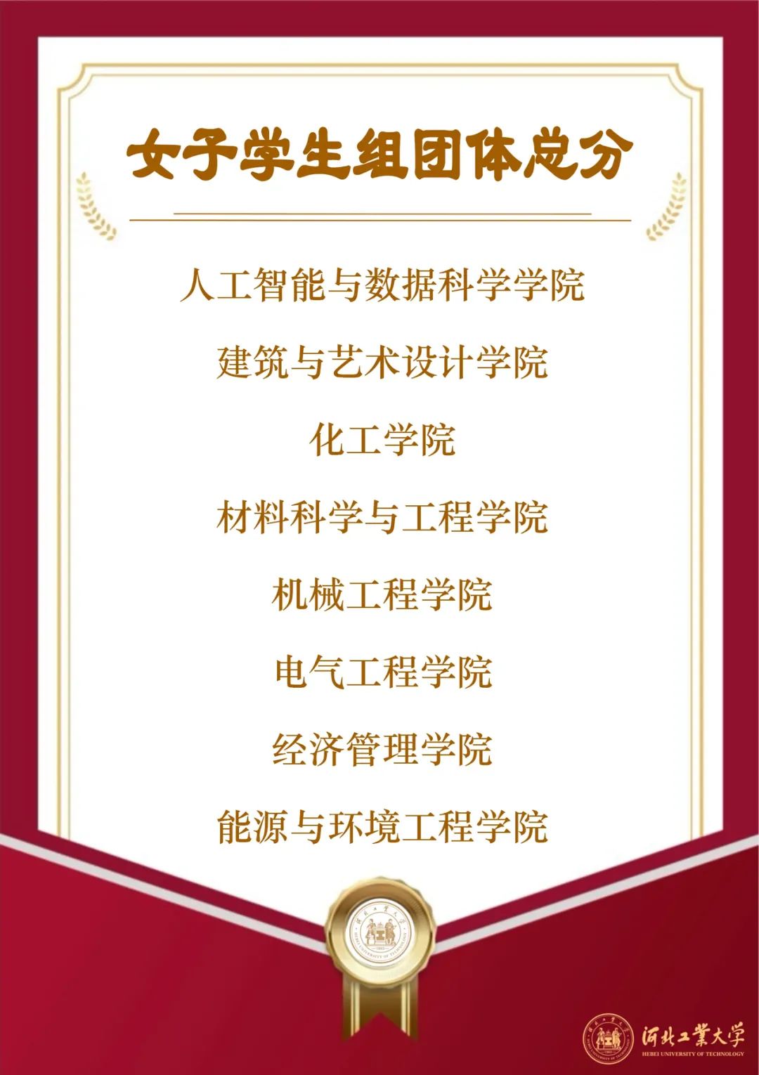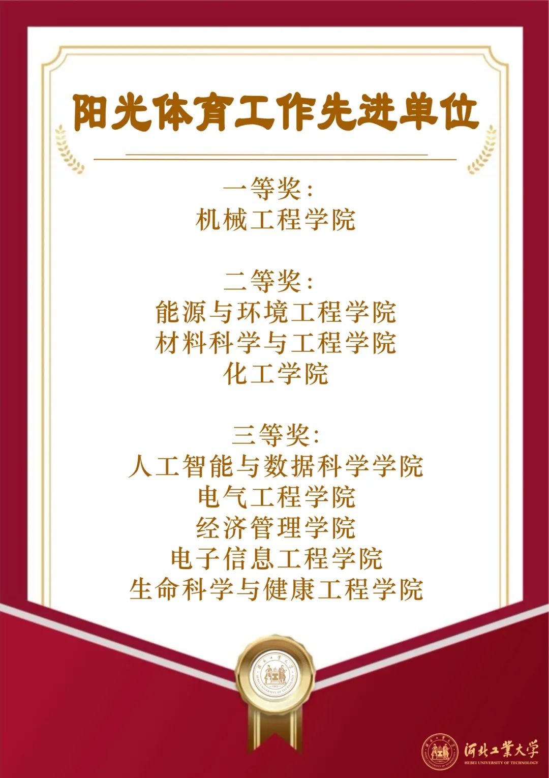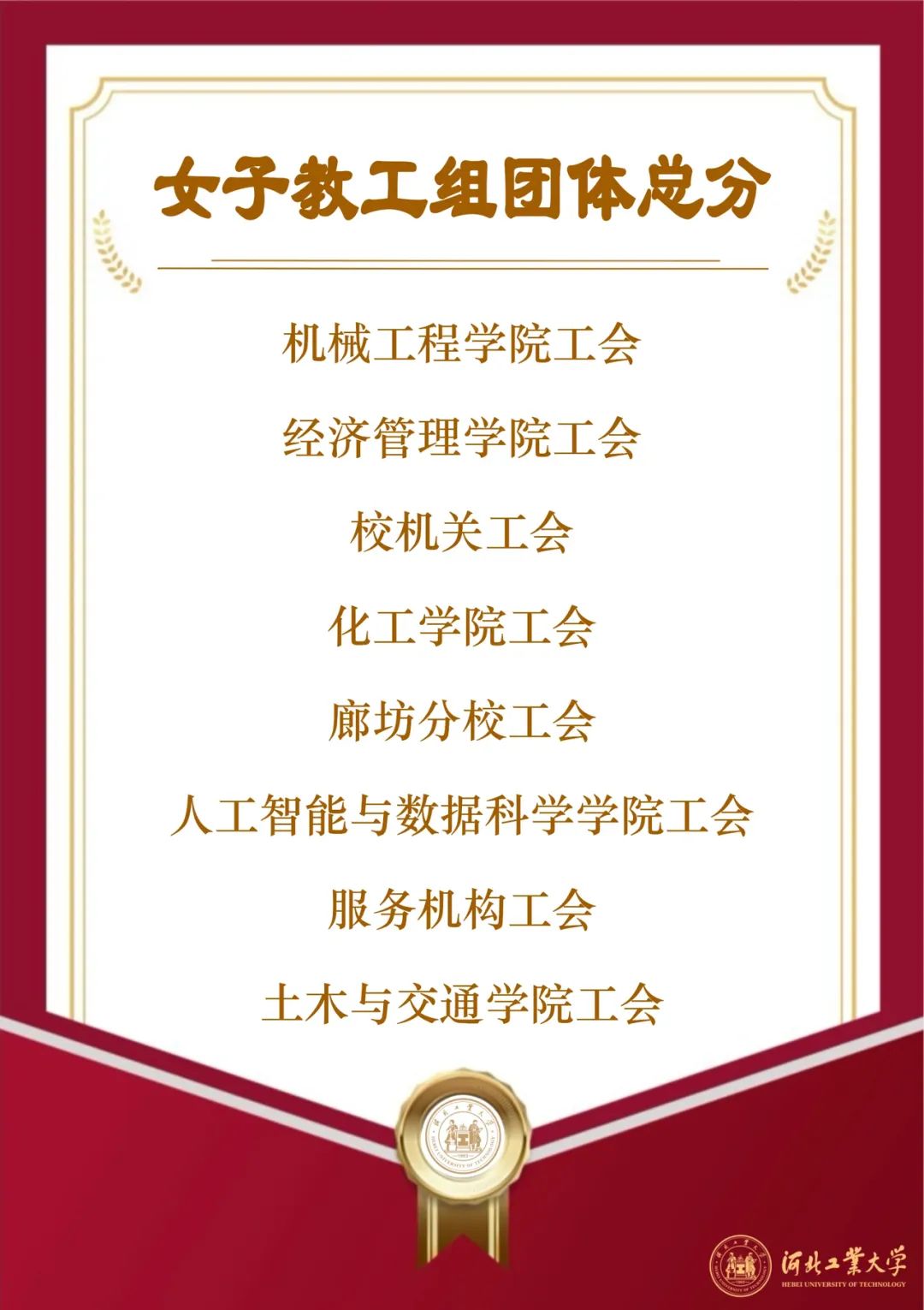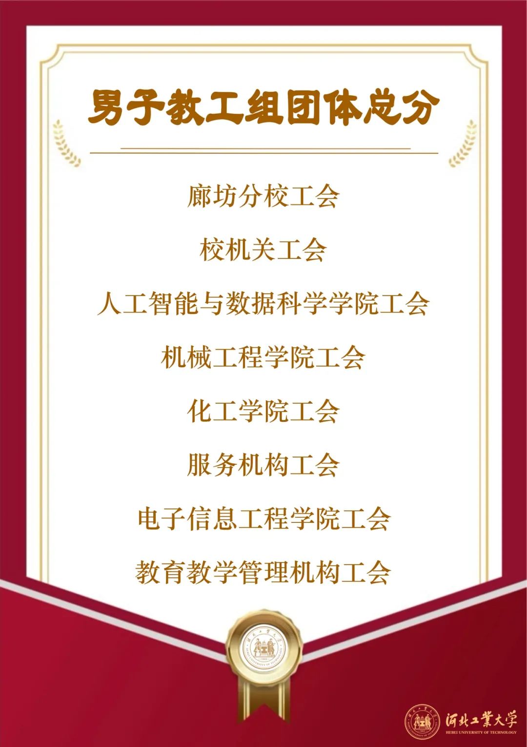 人工智能与数据科学学院一举夺得学生男女组桂冠;廊坊分校工会、机械工程学院工会分别在教职工男女组荣获冠军;马克思主义学院、经济管理学院工会分别在学生组、教工组体育道德风尚奖拔得头筹,校领导王利民、郎利影、李子彪为获奖单位颁奖。