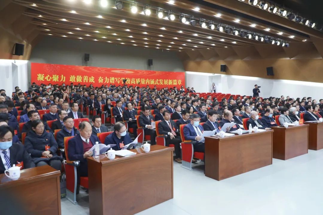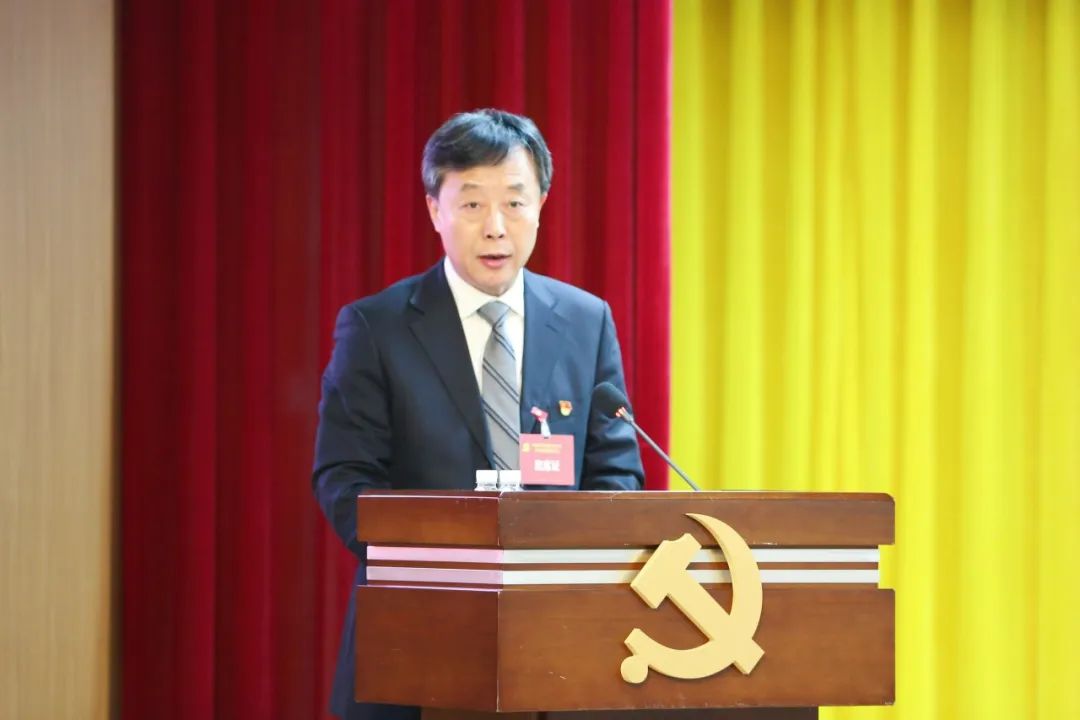 韩旭代表中国共产党英国beat365官方网站第五届委员会作题为“凝心聚力 敢做善成 奋力谱写学校高质量内涵式发展新篇章”的报告。