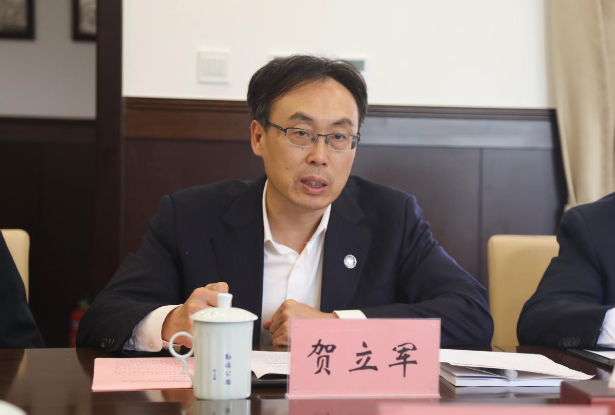 仪式上,贺立军与罗澍伟、高潮共同为校史系列丛书首发揭幕。