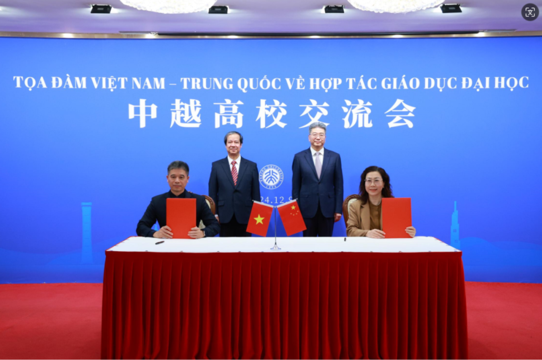 吴岩指出,建设教育强国,龙头是高等教育。中国建成了世界上最大规模的高等教育体系,有力支撑了经济社会发展。希望中越高校围绕落实两国部长会谈共识加强合作,共同打造数字教育新引擎,培育高校合作新亮点,释放青年学生交流新活力,推动两国教育合作迈向更高水平、实现更大发展。 阮金山表示,越中两国开展教育交流合作,是实现可持续发展和繁荣的坚实基础。希望两国高校进一步加强人才培养、科研合作和人文交流,为促进两国经济社会发展发挥更大作用。