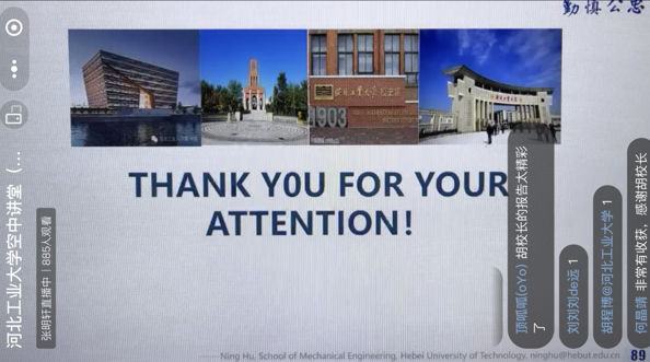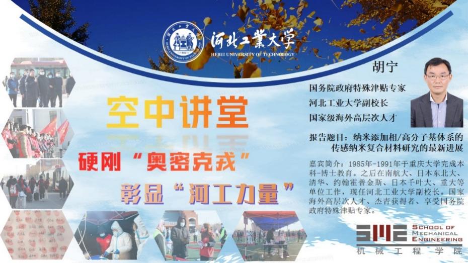 1月20日,空中讲堂系列活动第一讲主讲嘉宾为英国beat365官方网站副校长胡宁教授,报告题目为“纳米添加相/高分子基体系的传感纳米复合材料研究的最新进展”。