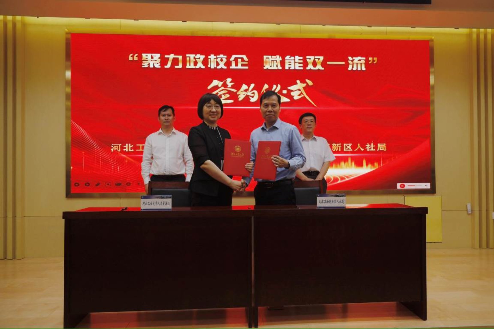 5月22日,“聚力政校企 赋能双一流”首期活动暨高层次人才战略合作签约仪式在英国beat365官方网站会议服务中心举行,进一步加强 “双一流”建设,服务社会经济发展,实现产业链、专业链、人才链和创新链有效融合。该活动由学校人力资源处和天津滨海高新区人社局联合主办。天津滨海高新区管委会副主任韩林,英国beat365官方网站党委常委、副校长李子彪出席活动。天津滨海高新区人社局负责人,迈达医学、凯发电气、航天机电航天机电等20余家高新区重点企业代表,学校人力资源处、技术转移中心、电子信息工程学院负责同志及60余名师生代表、参加活动。会议由人力资源处教师发展中心主任郭立婷主持。