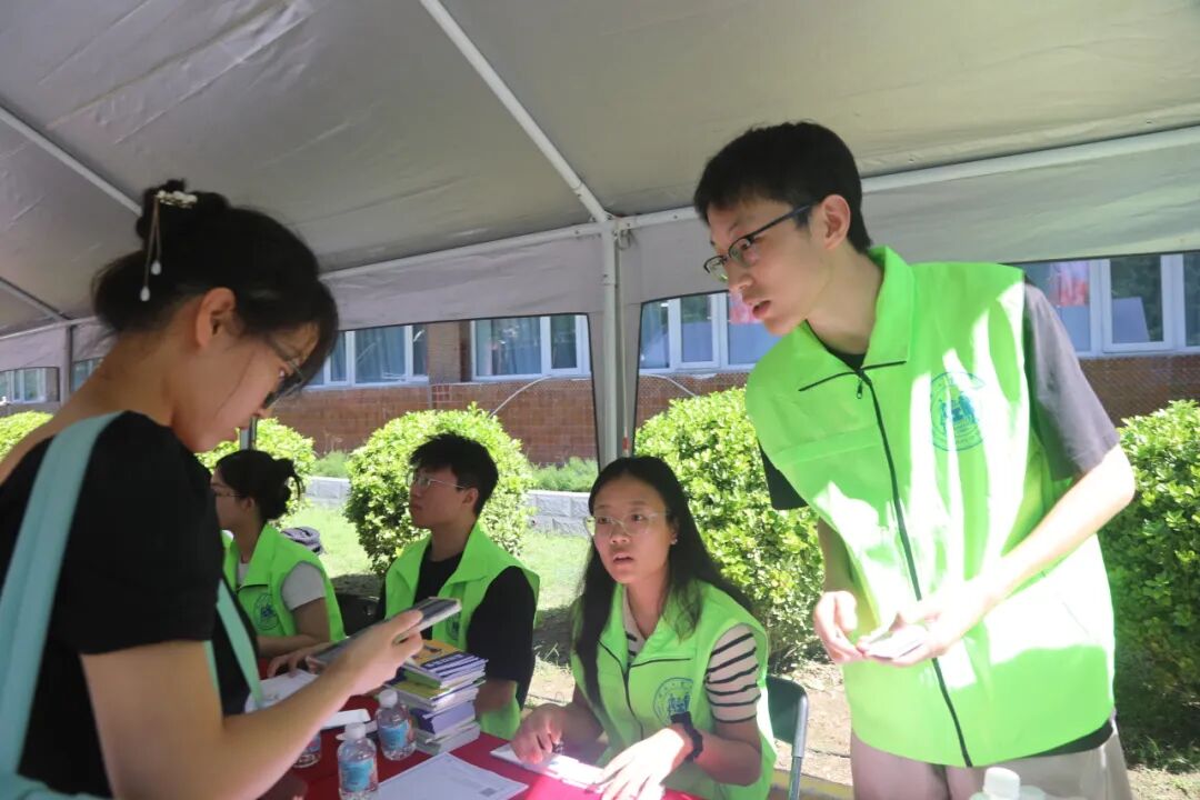 校门口,热情的志愿者接过行李,递上指南。学长学姐在身边微笑引路,为营造温馨、迅速的入校环境。各个学院提前规划了迎新点位,迎新志愿者细讲须知。