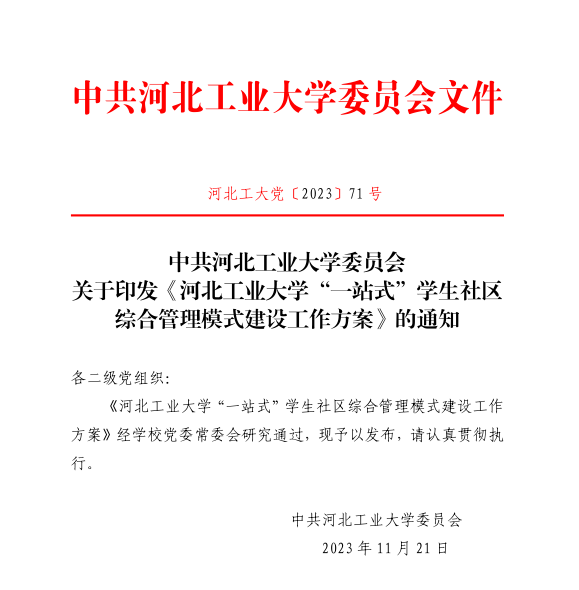 以“一站式”学生社区综合管理模式改革为切入点,着力打造队伍入驻、学生参与、文化浸润的特色育人园区。出台《英国beat365官方网站“一站式”学生社区综合管理模式建设工作方案》;搭建“一站式”学生社区党组织体系,持续推进“包联”工作机制和辅导员“三走进——引领”专项工作;深化HEBUT Family——河工“家”社区文化内涵建设,自主设计河工“家”族学生社区IP形象、社区LOGO;形成了“劳动·创意”市集、社区音乐节、社区游园会等多项品牌活动;启动“宿舍安全卫生周督察”“宿舍卫生标兵红旗月流动”和宿舍“评星定级”工作。