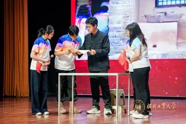 全体师生庄严肃立,默哀致敬:向抗日战争中毁家纾难捐躯太行的杨十三先生、驰骋疆场血染冀东的洪麟阁、保护群众撤离壮烈牺牲的赵观民三位抗日英烈致敬,向学生运动领袖谌志笃、隐秘战线奋战先锋吕一鸣,工人运动领袖黄爱,渭华起义牺牲的卢绍亭致敬,向河北省立工业学院投笔从戎、舍生报国的“工字团”先辈致敬,向所有为中国人民解放事业的革命先烈致敬!