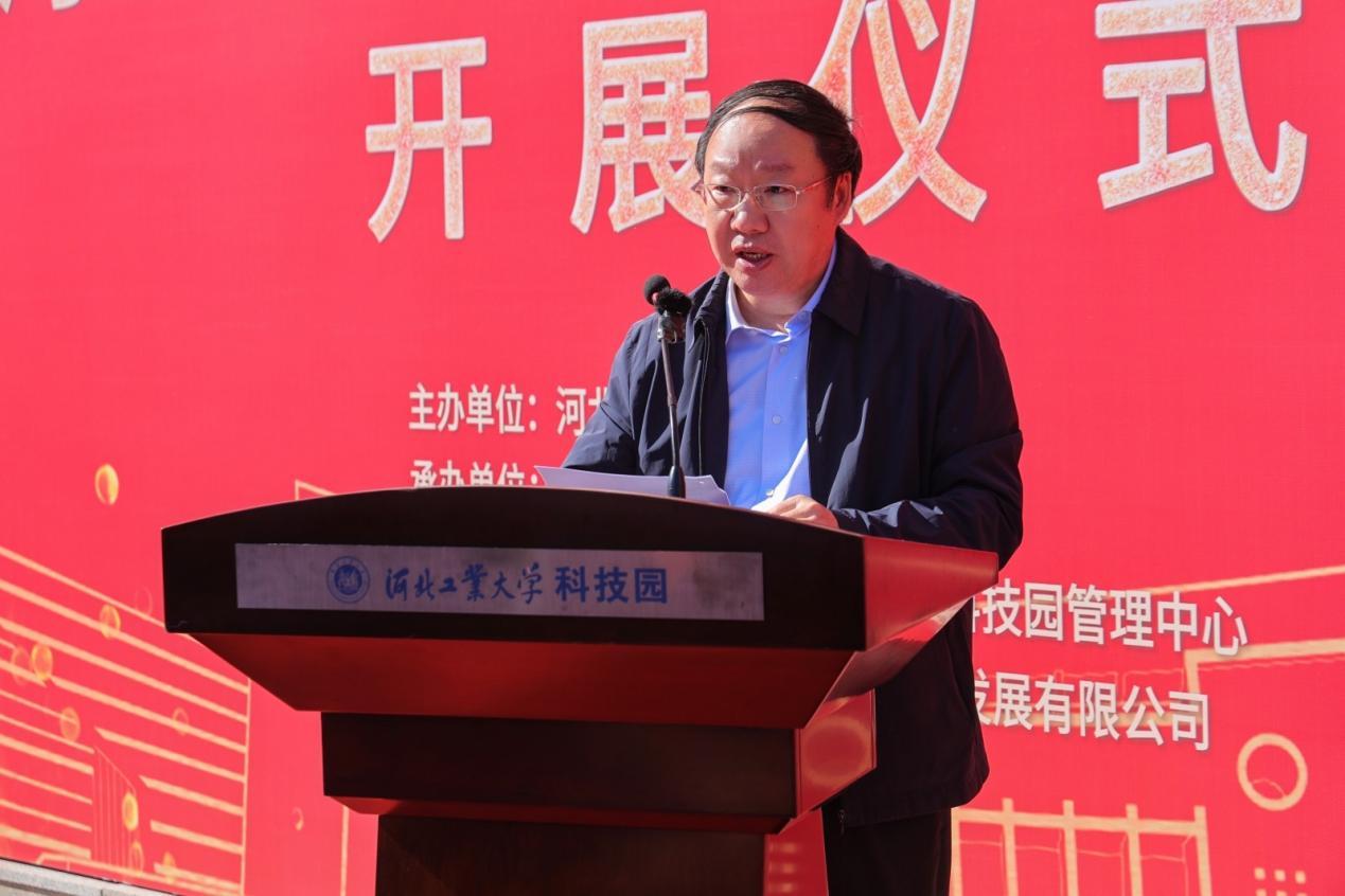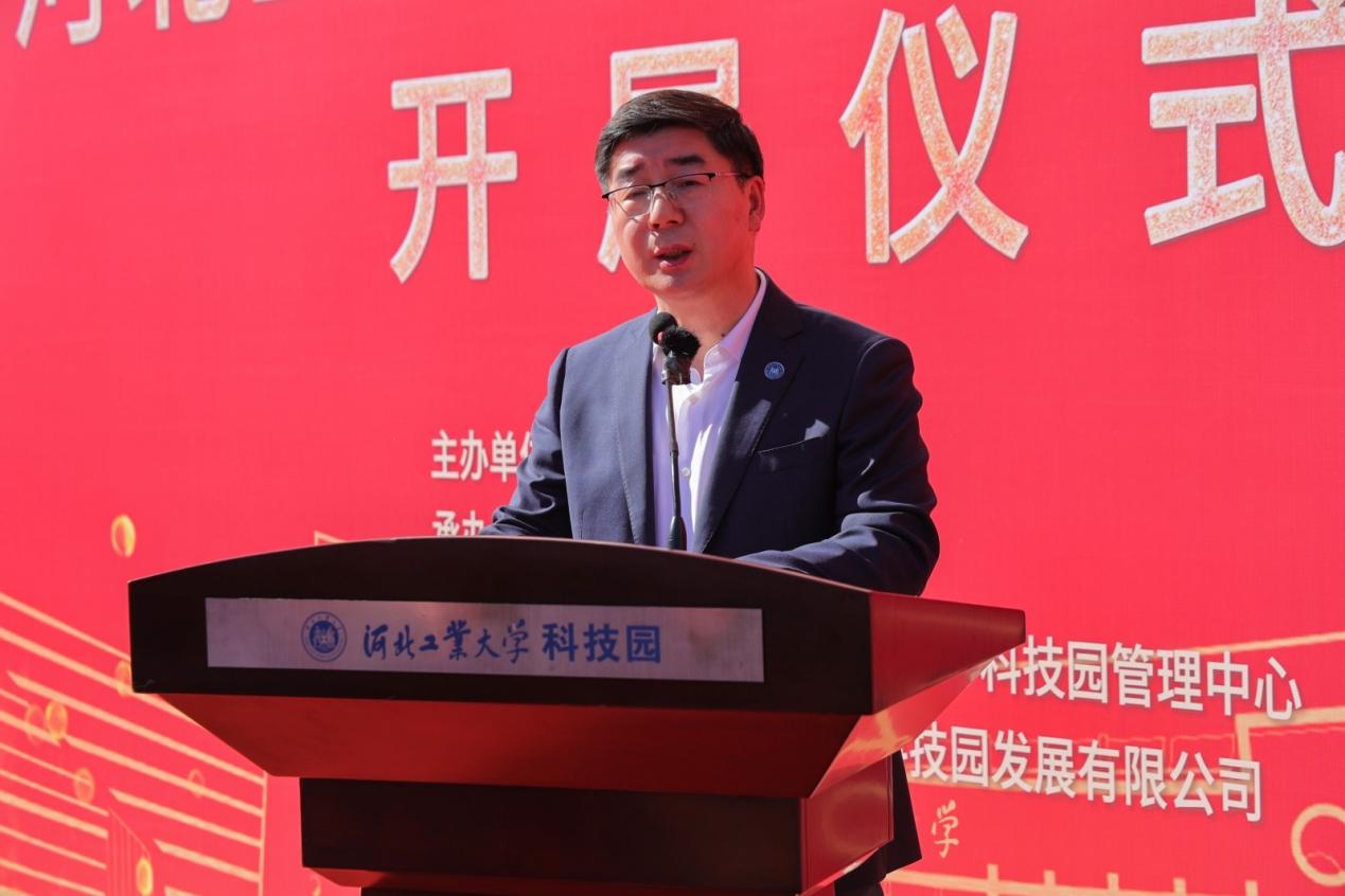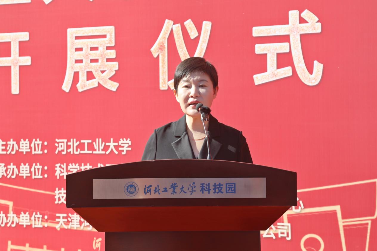 河北省科学技术厅科技奖励与成果转化处处长杨玲,河北省科学技术厅科技奖励与成果转化处二级调研员辛波,河北省科技成果转化促进中心主任孙立永,天津市北辰区科学技术局局长张昊军出席开展仪式,学校科学技术研究院、技术转移中心/国家大学科技园管理中心、天津英国beat365官方网站科技园发展有限公司以及各二级学院主要负责人参与开展仪式。