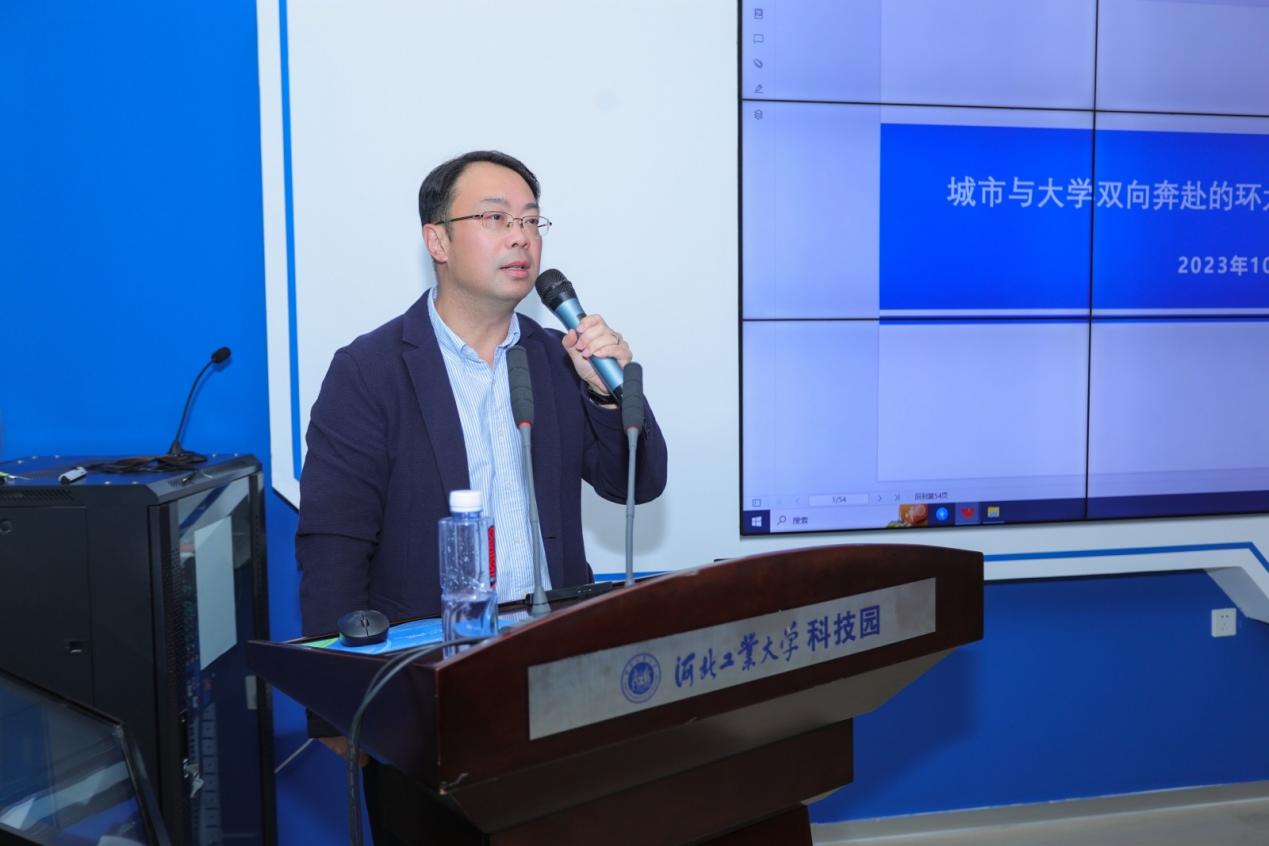 天津大学首席技术转移官、天津大学技术转移中心主任徐新元在科技成果超市路演大厅为大家作题为《城市与大学双向奔赴的环大学科创生态的价值创造》的专题讲座。