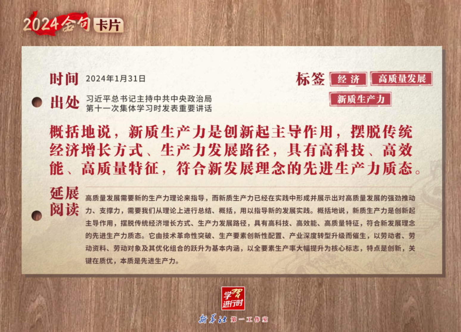 学习进行时丨2024金句卡片:习近平总书记谈“新质生产力”,这些话很深刻