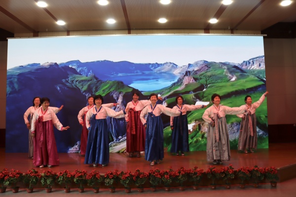 荣休仪式上,退休教师舞蹈团表演了精彩的舞蹈《阿里郎》。她们身着传统服饰,翩翩起舞,用优美的舞姿展现了对生活的热爱和对教育事业的眷恋。老年大学朗诵班的老师们深情朗诵了《杏花春雨,师爱不已》,声情并茂地表达了对教育事业的执着追求和对学生的深厚情感,让在场的每一个人深受感动。校团委艺术团青年教师郑颖独唱《老师,我总是想起您》,用歌声传递了对教师的敬意和感恩之情,将现场气氛推向高潮。老年大学手风琴班的合奏《山楂树》更是增添了一份温馨与浪漫,熟悉的旋律在建友厅内回荡,勾起了在场教师们对往昔岁月的回忆。