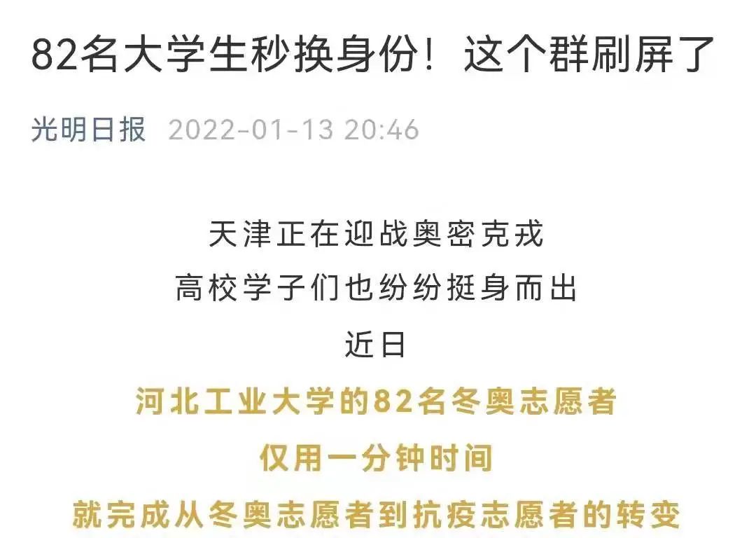 就完成从冬奥志愿者到抗疫志愿者的转变