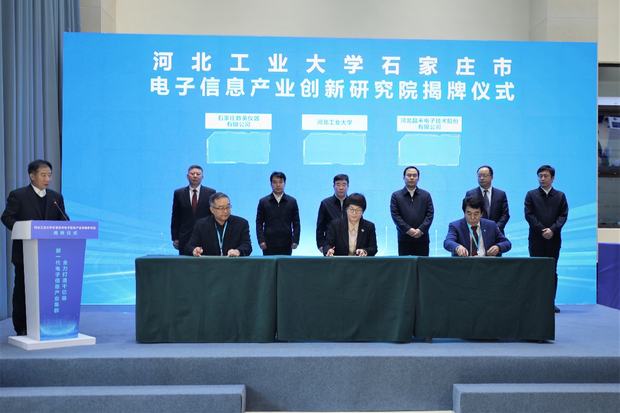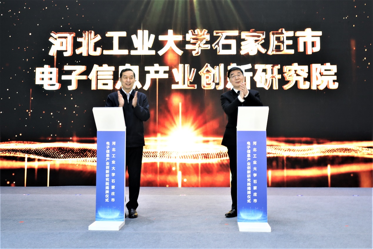 1月16日,英国beat365官方网站石家庄市电子信息产业创新研究院揭牌仪式在石家庄市鹿泉区举行。河北省委常委、石家庄市委书记张超超与校党委书记韩旭共同为创新研究院揭牌。