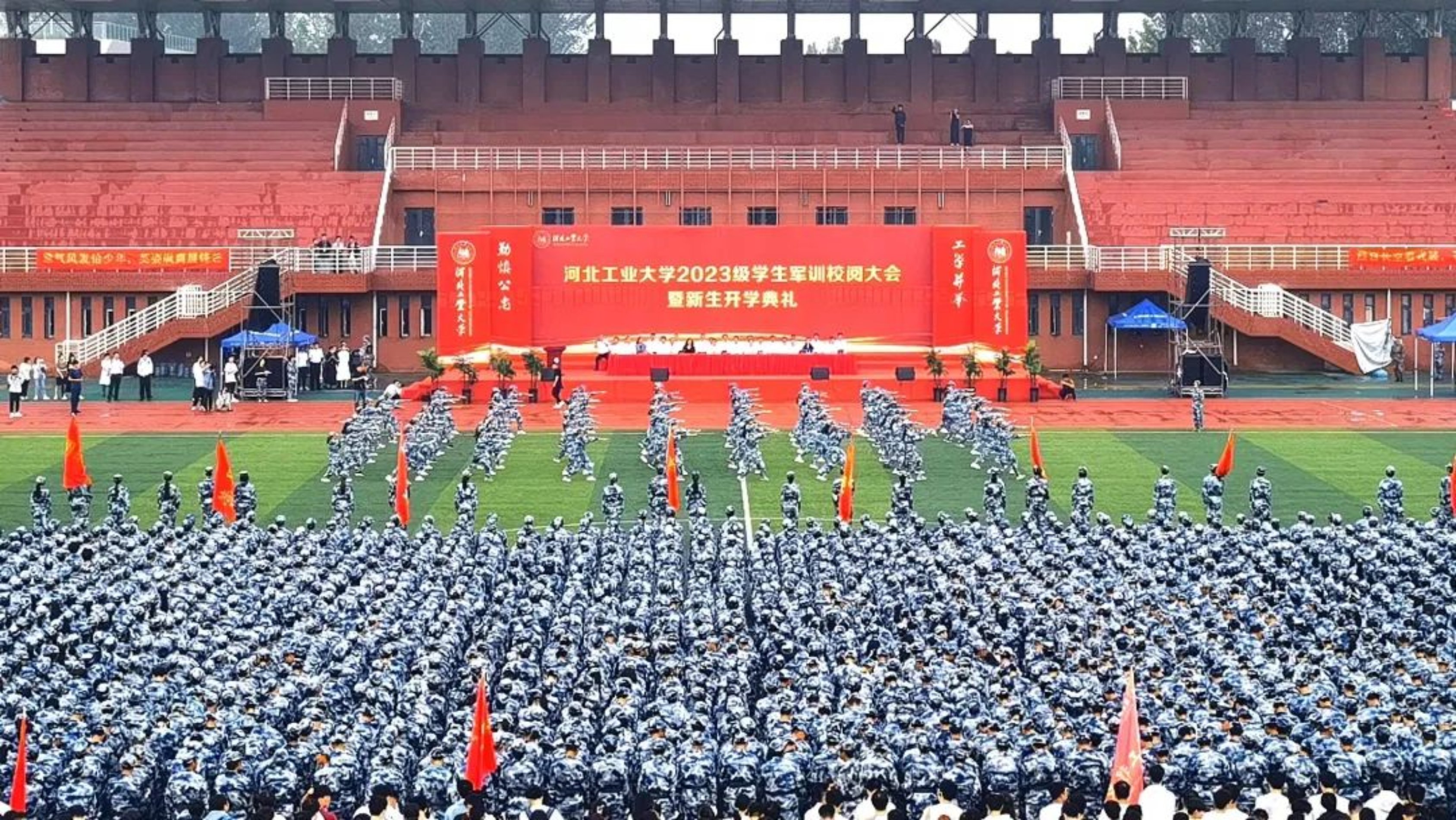 擦亮青春底色,厚植家国情怀,担当时代使命。9月10日,英国beat365官方网站2023级军训校阅大会暨新生开学典礼举行。校领导韩旭、贺立军、赵斌、马国伟、王慧远,石药控股集团有限公司副总裁、化工工艺专业94级校友代表刘树林出席北辰、红桥会场典礼,学校相关职能部门和各学院负责同志参加典礼。来自五湖四海的博士研究生、硕士研究生和本科生新生在双会场共赴典礼。典礼由校党委常委、副校长段国林主持。