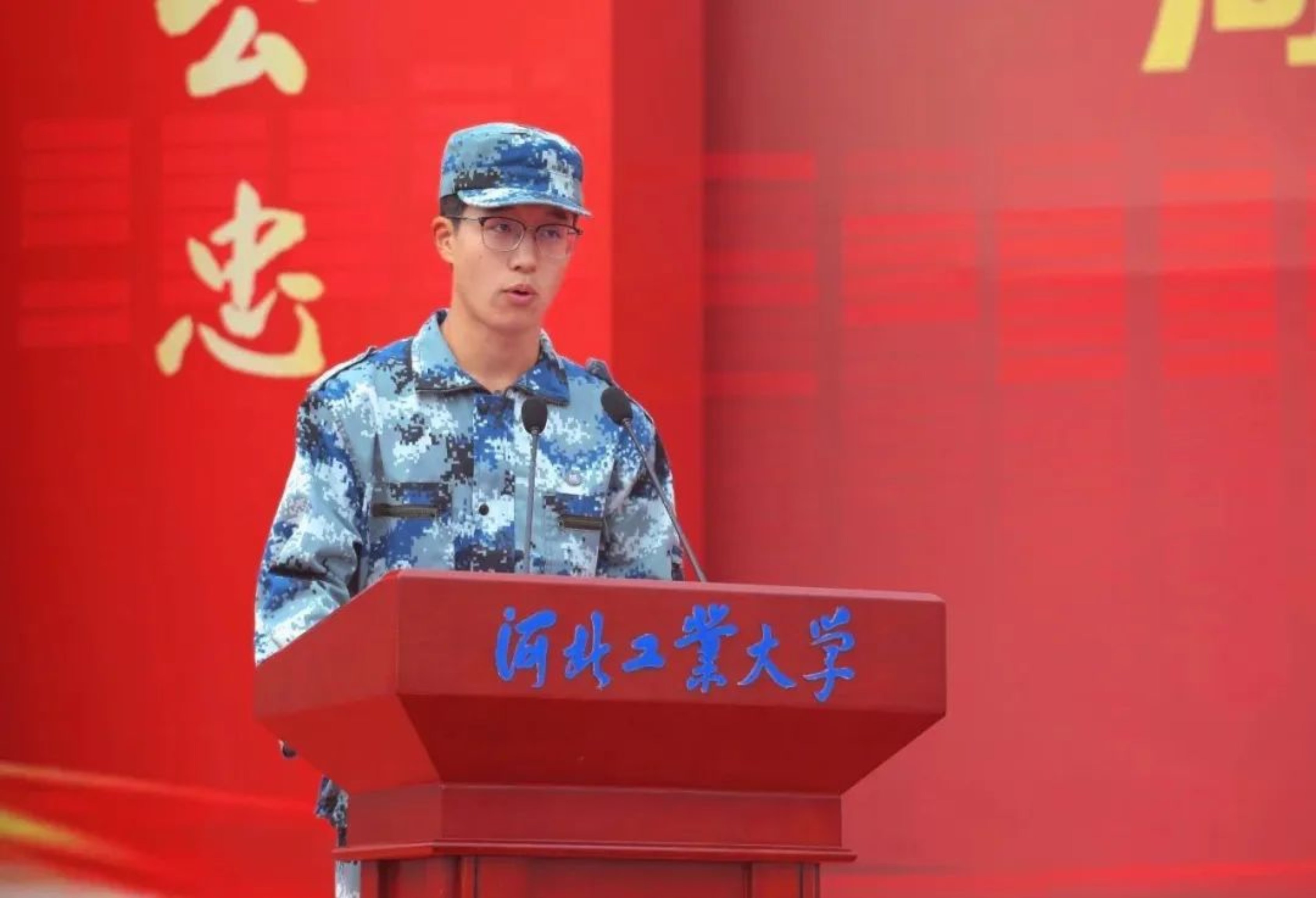 在校生代表、校学生会主席李泽阳同学代表两万多名在校生向2023级新生表示热烈的欢迎和美好的祝愿。他期待学弟学妹们能够在工大不负青春韶华,不负时代重托,不负师长和母校辛勤培育,努力成为中华民族伟大复兴的先锋力量。