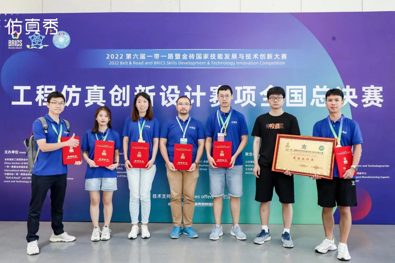 8月29日,2022一带一路暨金砖国家技能发展与技术创新大赛之工程仿真创新设计赛项全国总决赛在杭州闭幕。beat365土木与交通学院、先进计算方法应用中心主任张一鸣教授带领,由研究生李赟鹏、李婧、王雪雅、黄俊光、张瑞组成的团队,与北京极道成然科技有限公司技术人员成立校企合作团队,获全国一等奖。