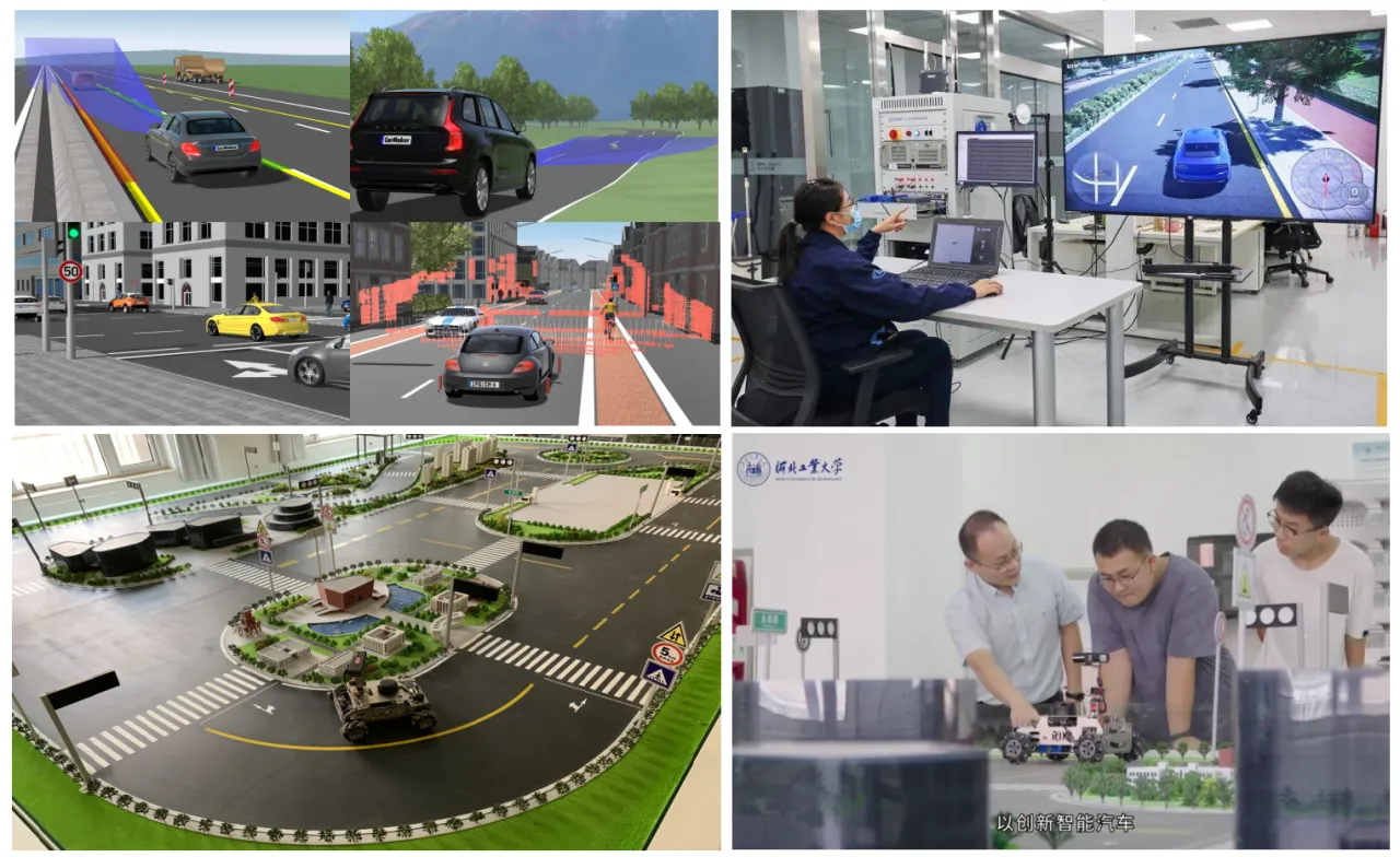 基于专业数智化建设需求,学校与中国汽车技术研究中心、长城汽车股份有限公司深度合作,建设校企共享多翼教学资源,共创多域实践教学平台,打造了“智能驾驶虚拟仿真实验室”“实景交互智能交通沙盘”“智能网联汽车示范校区”三位一体的智慧实践教学平台,有效地解决了专业人才培养中实践场景少、实操难等问题。
