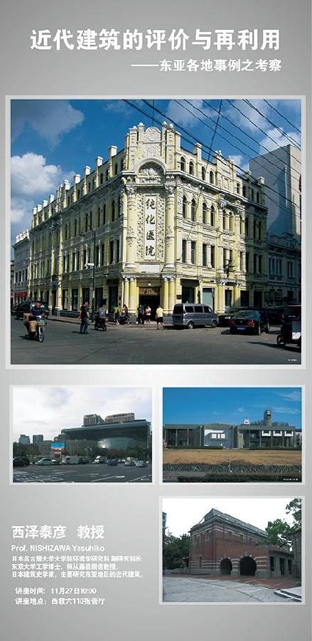 报告题目:近代建筑的评价与再利用——东亚各地事例之考察 报告时间:11月27日 10:00 报告地点:西教六(建筑与艺术设计学院楼)110报告厅 专家简介: 日本名古屋大学大学院环境学研究科,副研究科长;东京大学工学博士,师从藤森照信教授;日本建筑史学家,主要研究东亚地区的近代建筑。