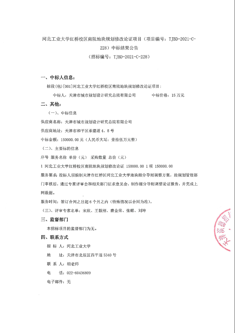 基建招标 当前位置:首页 \ 招标信息 \ 基建招标 英国beat365官方网站红桥校区南院地块规划修改论证项目(项目编号:TJBD-2021-C-228)中标结果公告 时间:2021-08-25 点击量:次 英国beat365官方网站红桥校区南院地块规划修改论证项目(项目编号:TJBD-2021-C-228)中标结果公告